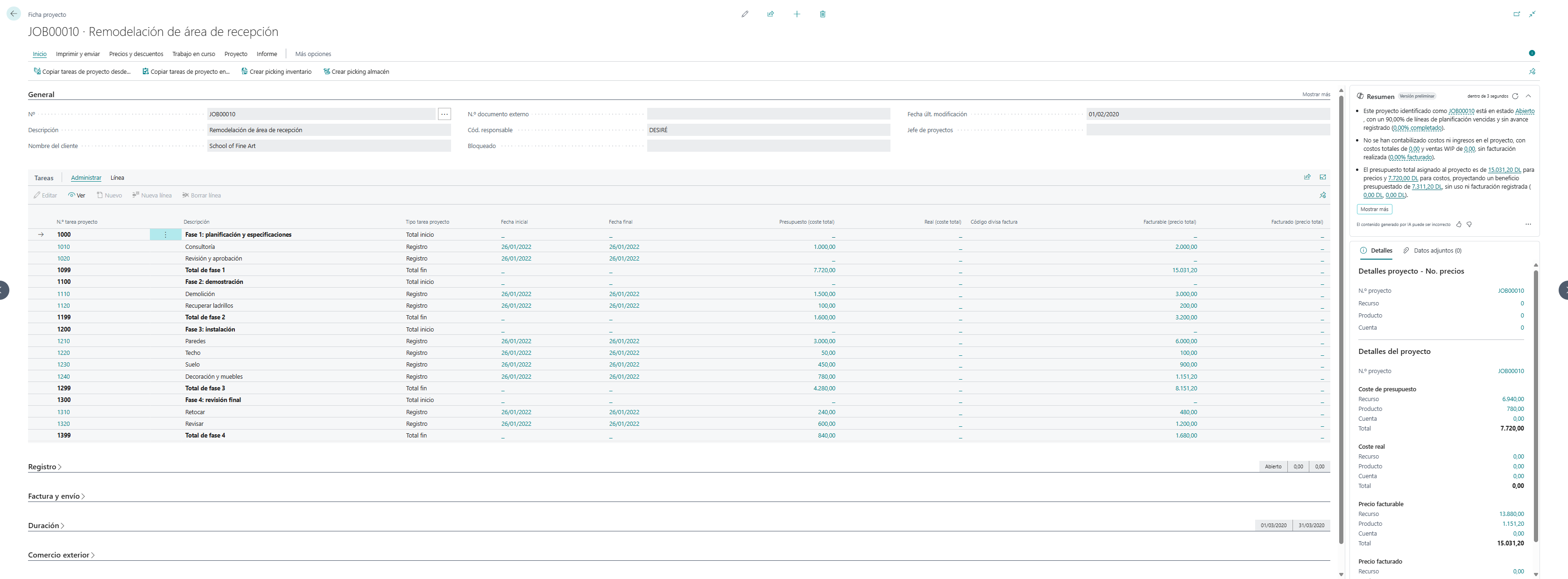 Business Central centraliza planificación, presupuestos, tiempos, compras y facturación por proyecto con una trazabilidad completa